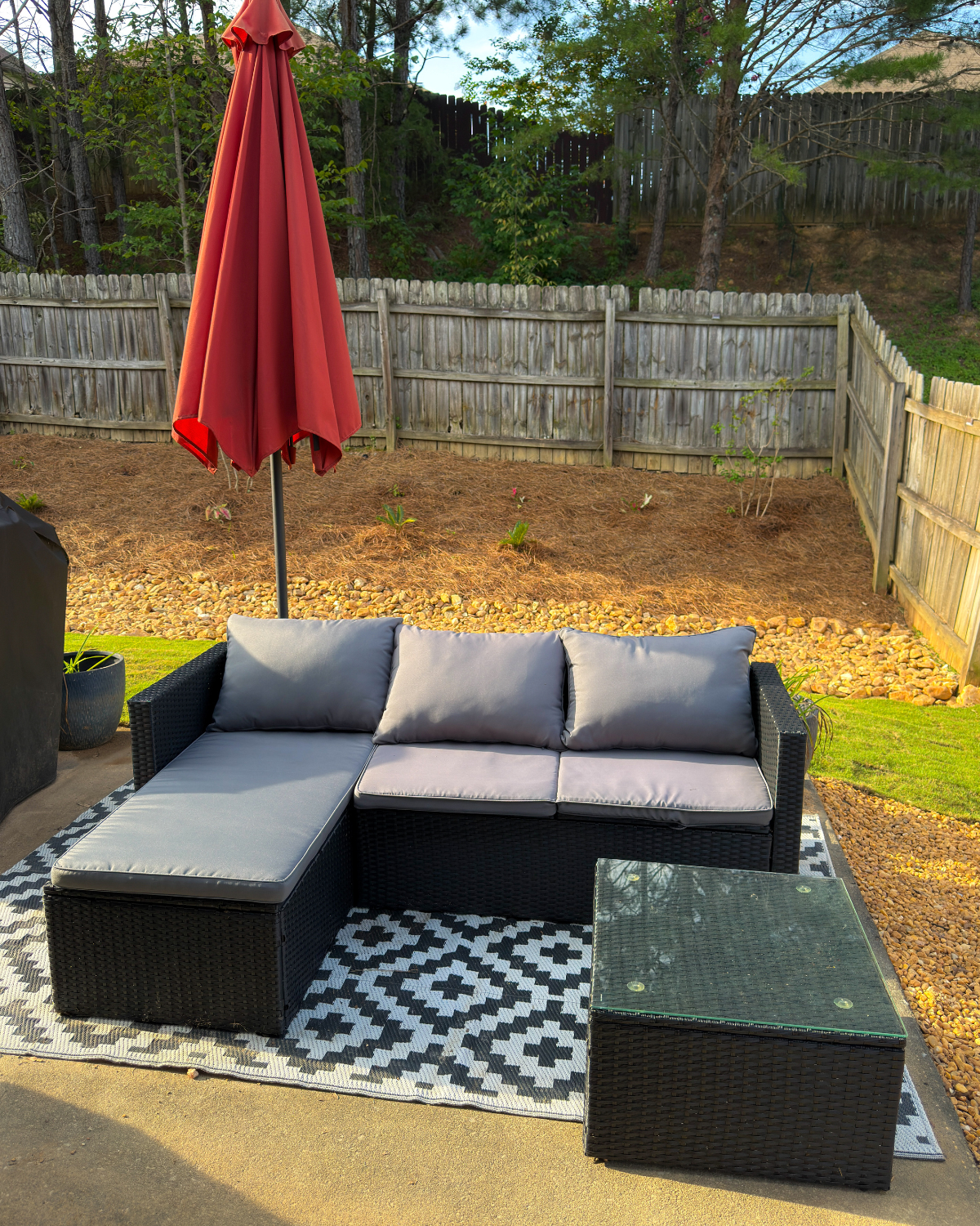 This backyard went from “one day we’ll get to it” to “why would we ever leave?” in just a few weeks, and I love how it all came together. Morning coffee, evening hangs, weekend cookouts, this space is ready for it all.
